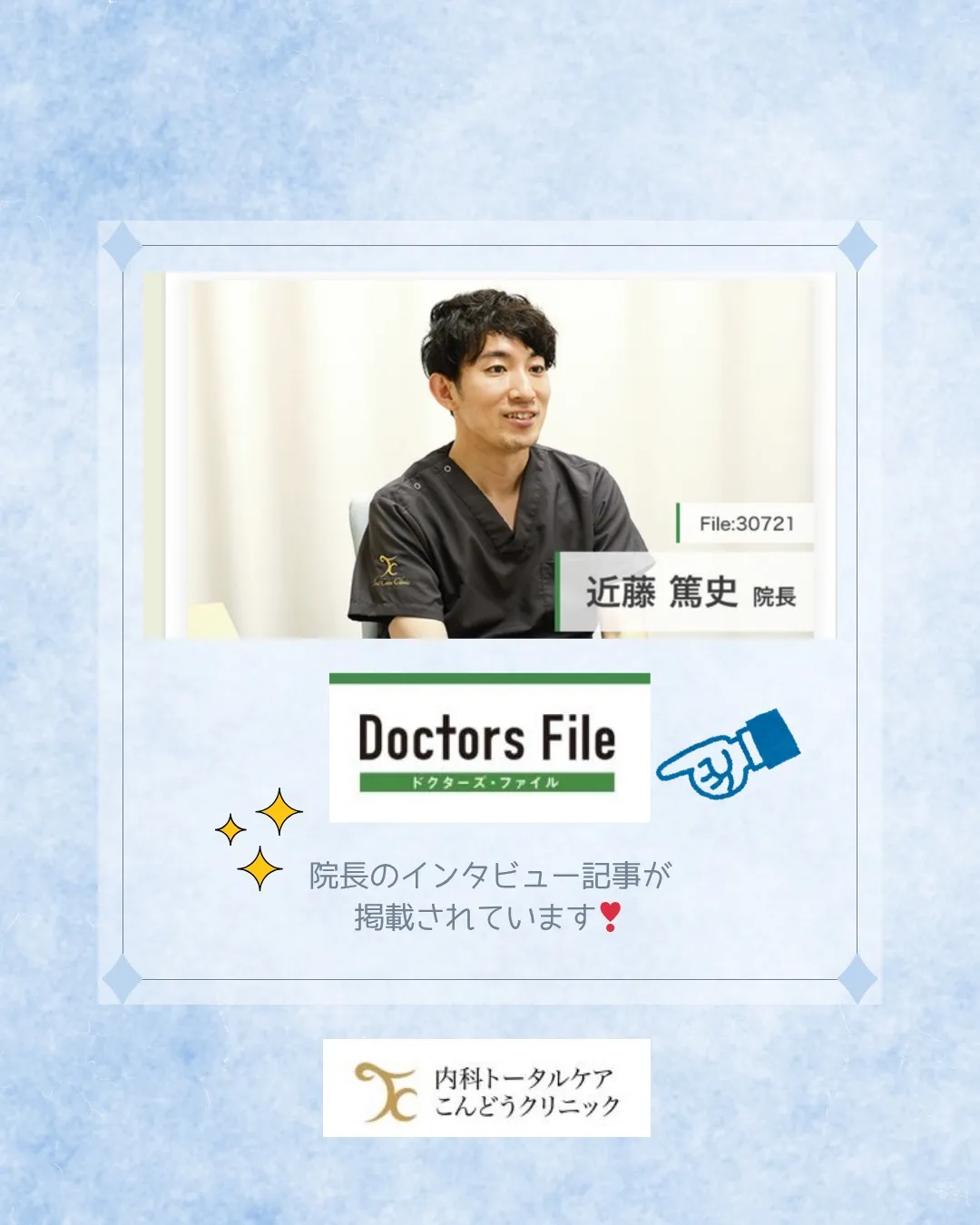 . 2026/04/07 . 院長のインタビューが地域医療情報サイト 「ドクターズ・ファイル」に掲載されています✨ ぜひご覧ください😊🍀 https://doctorsfile.jp/h/223666/ #内科トータルケアこんどうクリニック #阪急千里山駅 #北摂クリニック #内科クリニック #総合内科 #ドクターズファイル